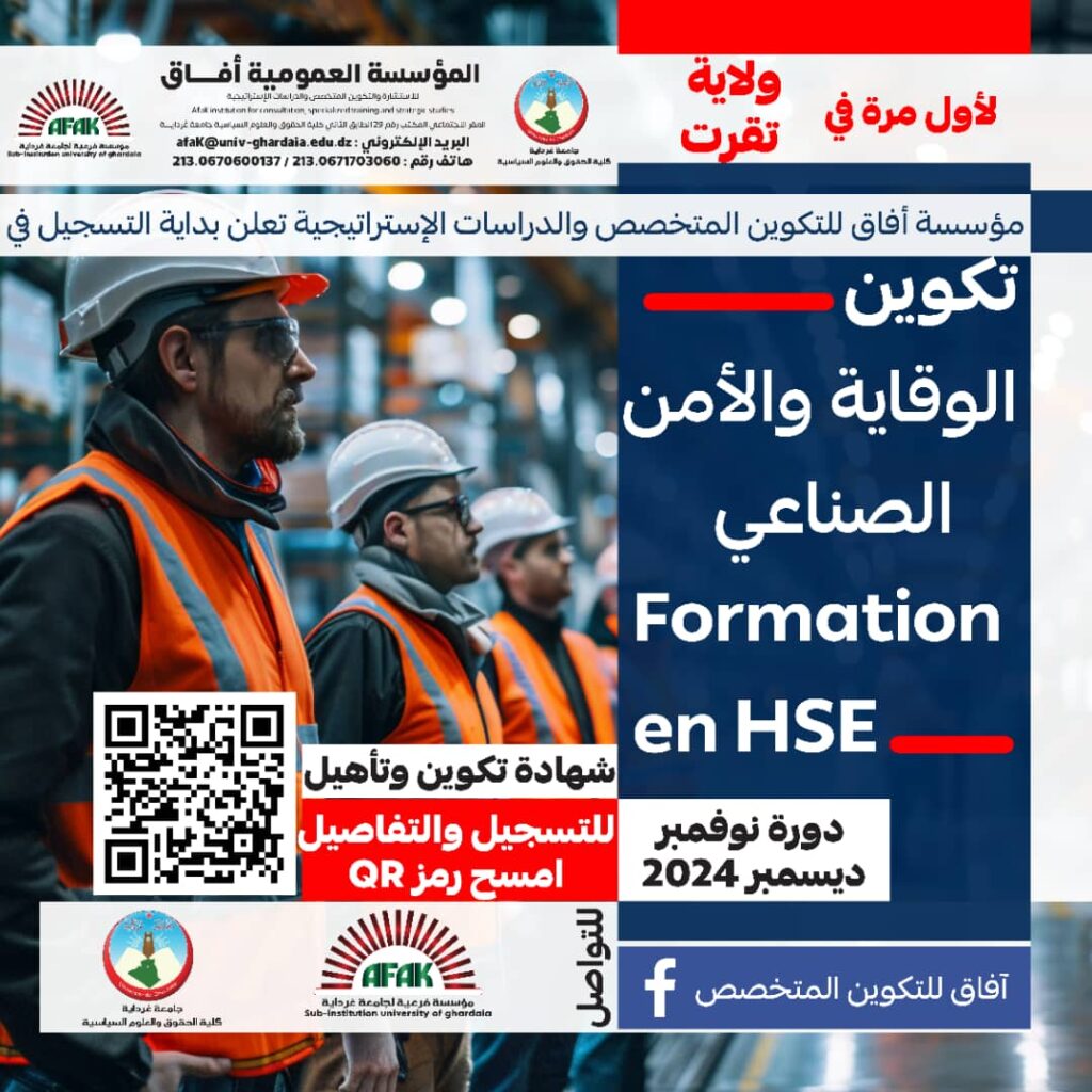 رابط التسجيل في الدورة: إستمارة تسجيل الراغبين في تكوين الأمن والوقاية HSE