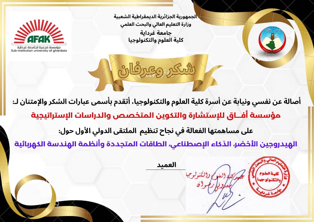 مؤسسة افاق الهيدروجين الأخضر الذكائ الاصطناعي الطاقات المتجددة أنظمة الهندسة الكهربائية